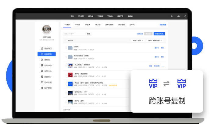 不同专业版会员之间可以进行全景漫游作品跨账号复制,实现作品的快速迁移和同步